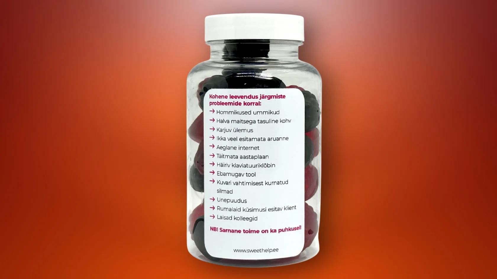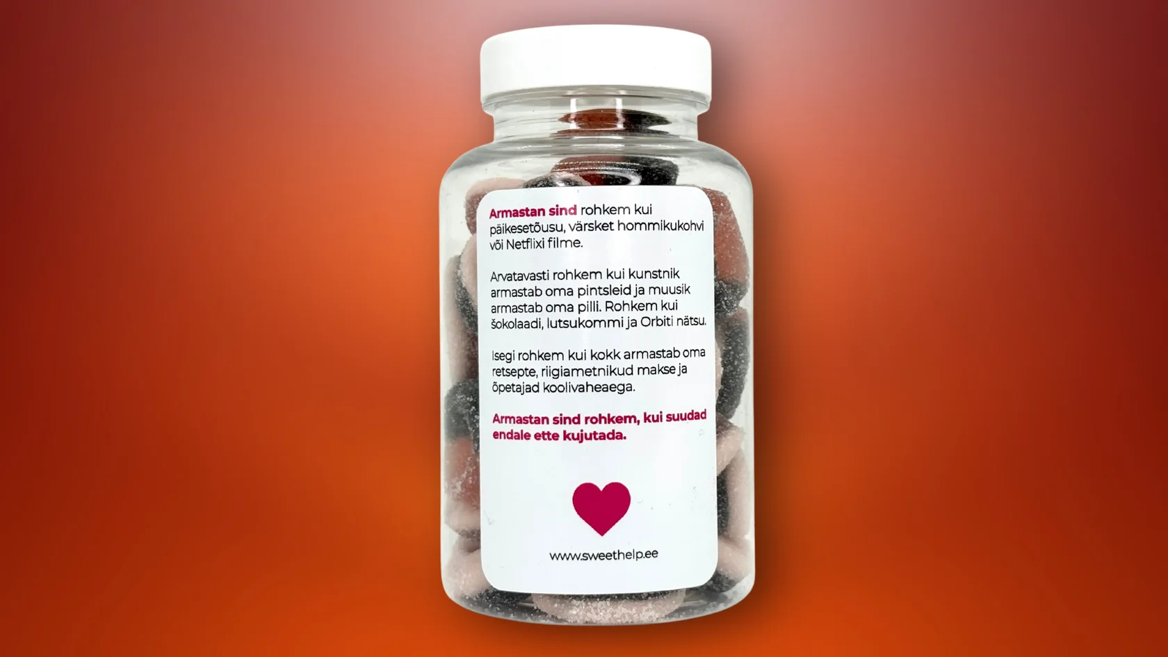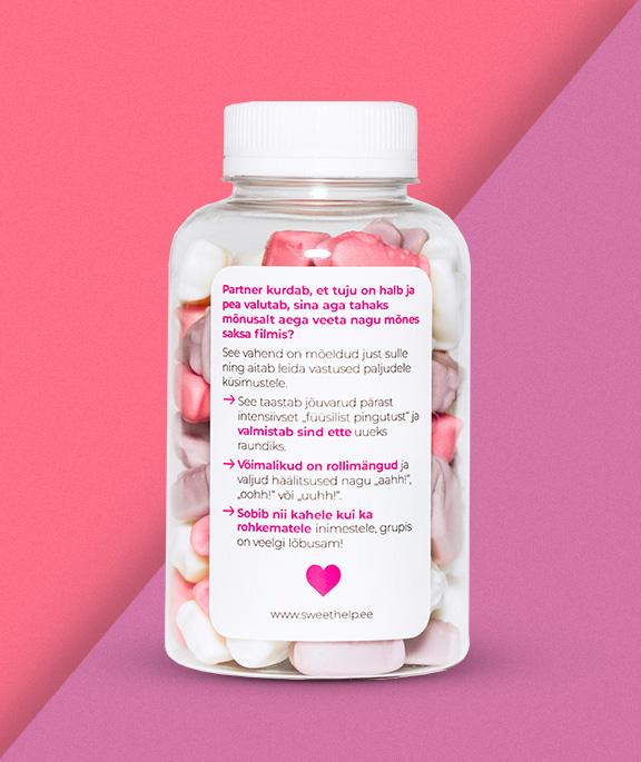Koostisosad: Glükoosisiirup, suhkur, modifitseeritud kartulitärklis, želatiin, sidrunhape, piimhape, õunhape, happesuse regulaator: kaltsiumtsitraat; lõhna- ja maitseained, toiduvärv: karmiin, kurkumiin, briljantsinine FCF; palmirasv. Toitumisalane teave 100g kohta: energeetiline väärtus 1430 kJ/336 kcal; rasvad 0,1g, sellest küllastunud rasvhapped 0,1g; süsivesikud 77g, sellest suhkrud 48g; valgud 4,3g; sool <0,2g, kiudained 0,1g. Pakendaja: Tasty Help OÜ, Tartu mnt. 30-26, Tallinn 10115, info@sweethelp.ee, parim enne: vt. pakendilt. Netokaal 180g.
