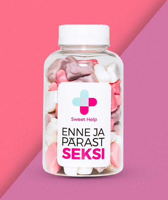 Koostisosad: glükoosisiirup, suhkur, vesi, želatiin, happesuse regulaator: sidrunhape, povidijamahlak kontsentraat 1,75%, pihlmapüree kontsentraat 1,75%, värvid: kookosõli/karnaubavaha; happesuse regulaator: sidrunhape, toiduvärv: kurkumiin, briljantsinine, paprikaekstrakt, anatoekstrakt, toiduvärvid. Toitumisalane teave 100g kohta: energeetiline väärtus 1400kJ/329kcal; rasvad 0,3g, millest küllastunud rasvhapped 0,2g; süsivesikud 74g, millest suhkrud 54g; valgud 6,6g; sool 0,05g. Pakendaja: Tasty Help OÜ, Pärksi, Lääne-Nigula vald 91201, info@sweethelp.ee. Parim enne: vt. pakendilt. Netokaal 180g.